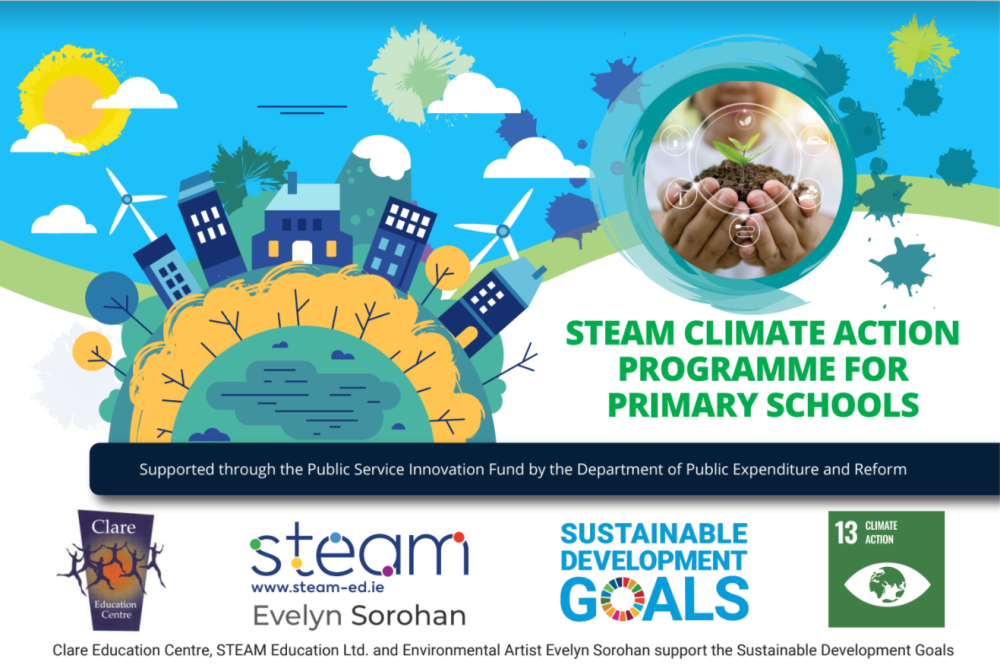 Clare Education Centre, STEAM Education Ltd. and Environmental Artist Evelyn Sorohan have joined forces to collaboratively develop an innovative Climate Action for Primary Schools (CAPS) Programme.